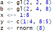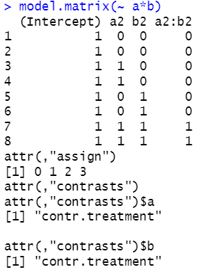 12.3 We are asked to look at the definitions below, and to generate model matrices for z ~ a*b, z ~ a:b, etc.